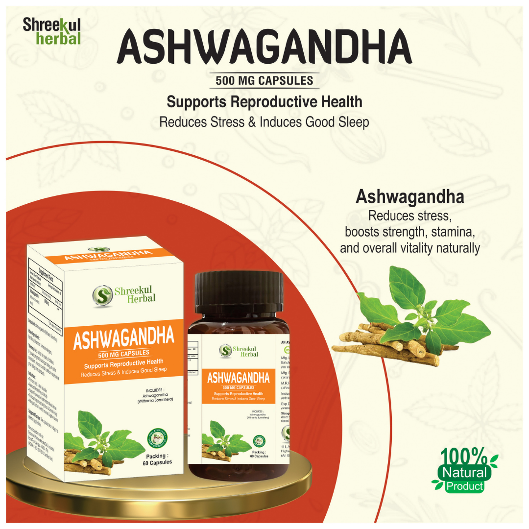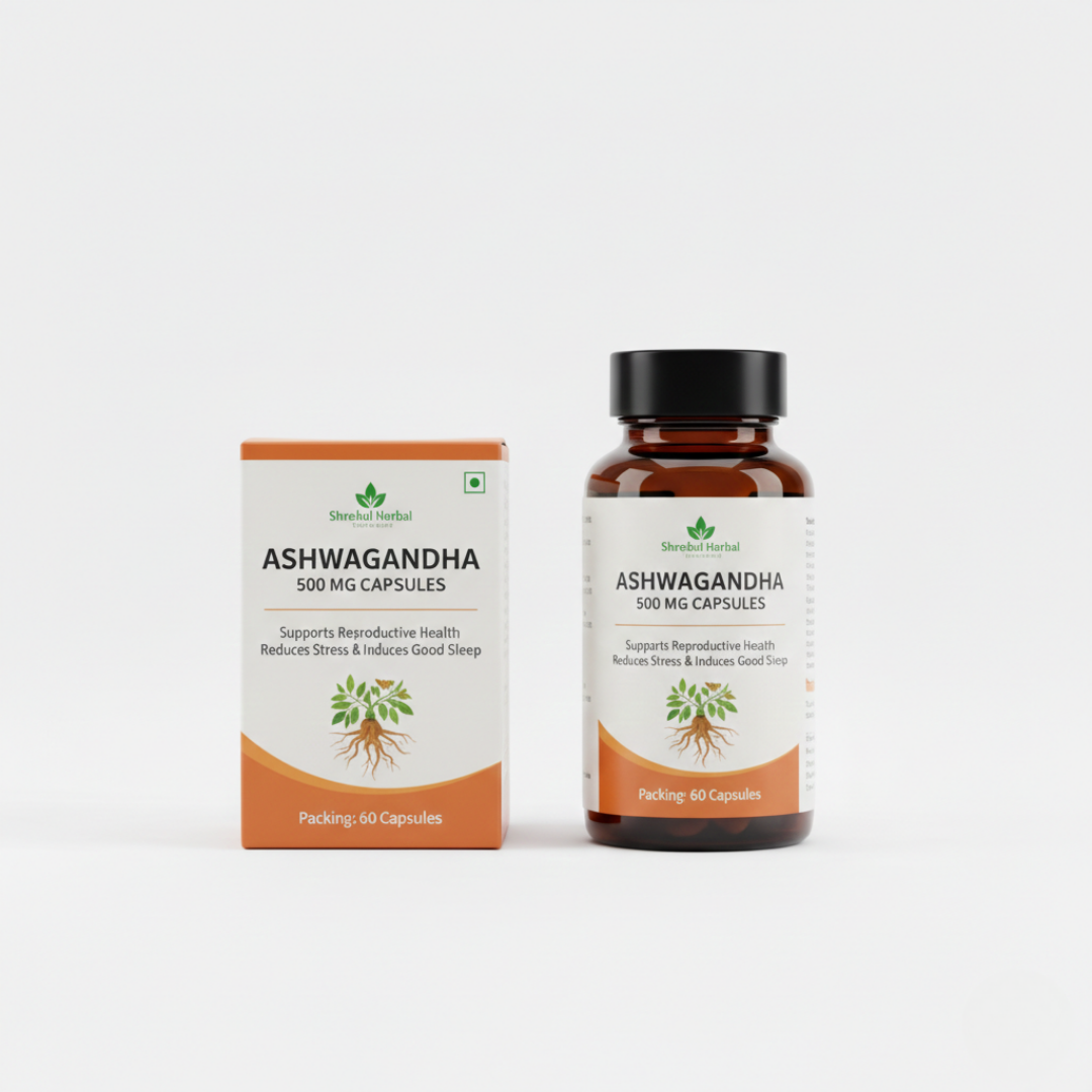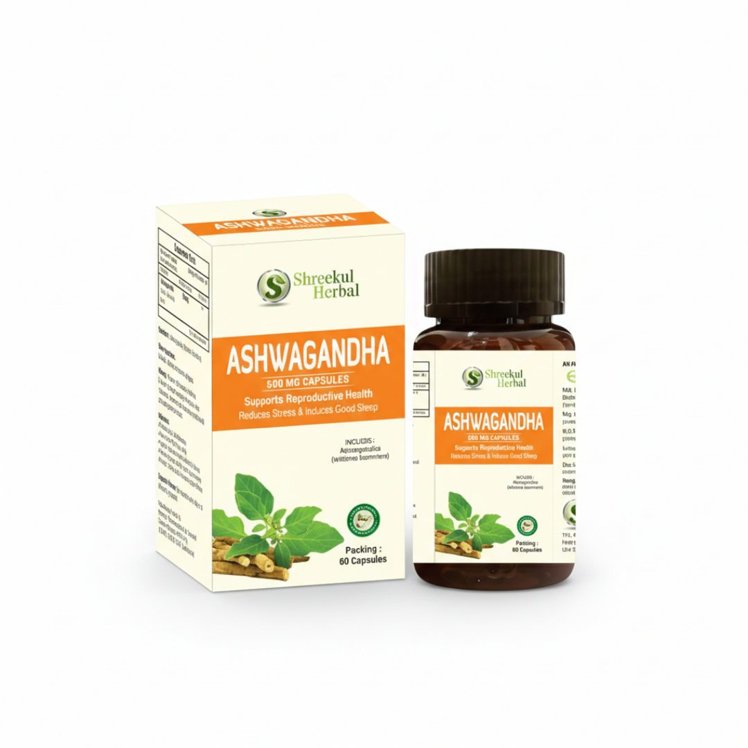Ashwagandha Capsules ek powerful Ayurvedic adaptogen hai jo stress kam karne, strength & stamina badhane aur achhi neend lane me madad karta hai. Ye capsules reproductive health ko support karte hain aur body ki overall vitality ko naturally improve karte hain.