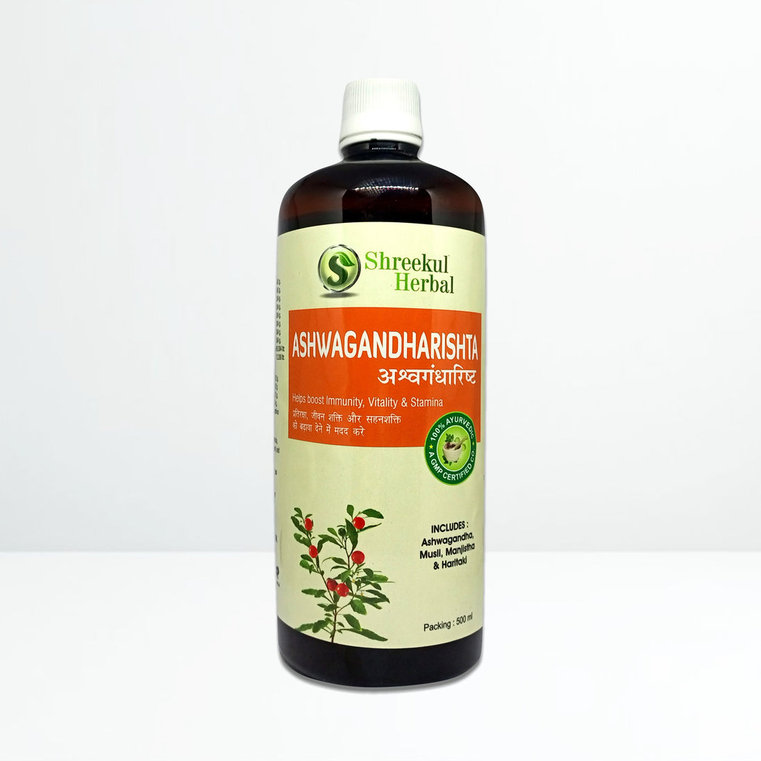 Shreekul Herbal Ashwagandharishta is a powerful Ayurvedic health tonic formulated with Ashwagandha and other potent herbs that work together to boost immunity, vitality, and stamina.