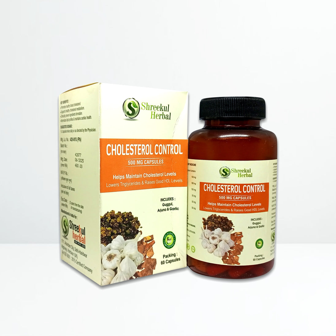 Guggul is traditionally known to balance cholesterol and triglyceride levels, while Arjuna strengthens heart muscles and supports normal cardiac function. Garlic acts as a natural antioxidant, promoting healthy blood circulation and reducing oxidative stress. Triphala enhances digestion and metabolism, aiding in overall wellness and detoxification.