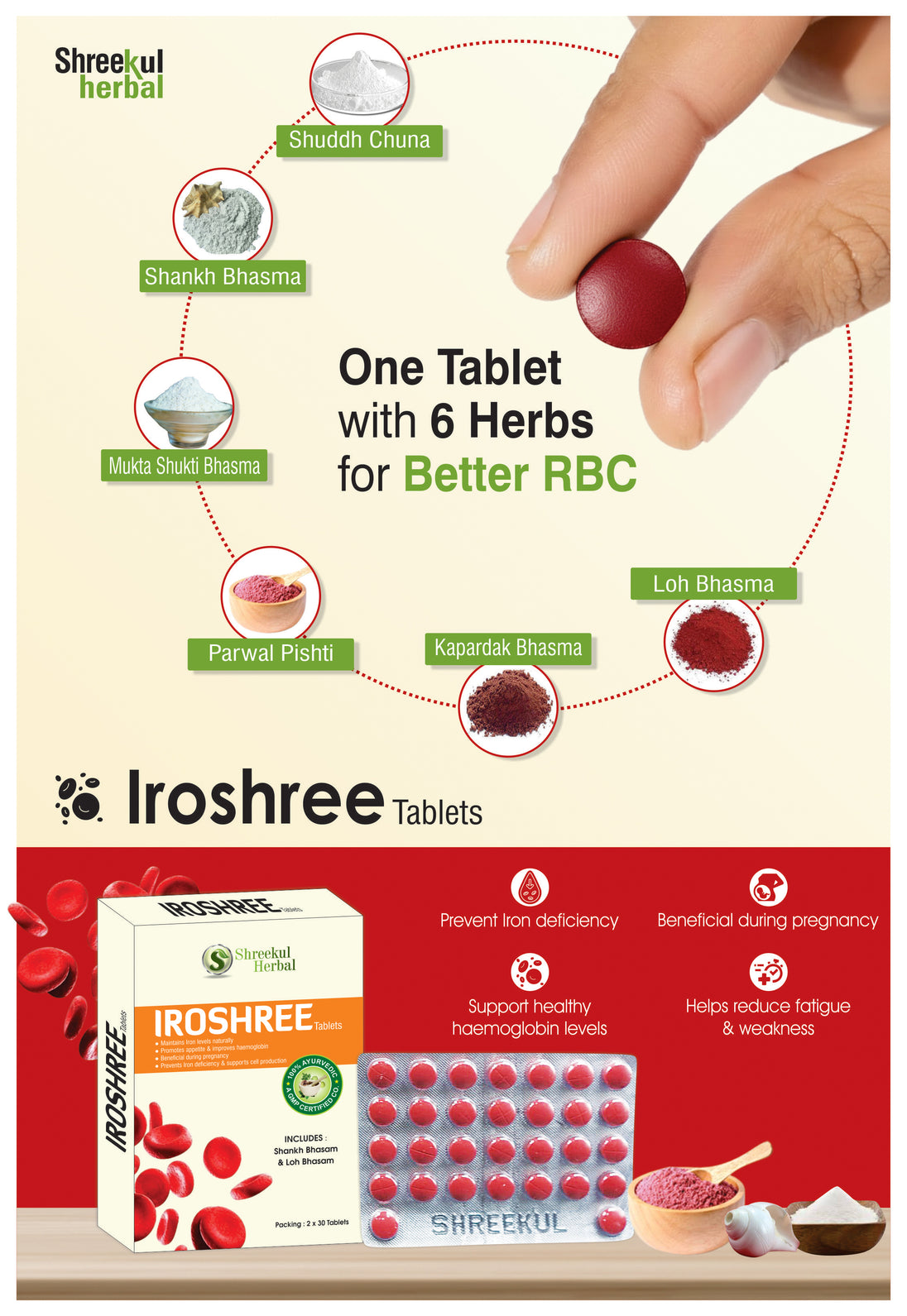Take a natural step towards better blood health with Iroshree Herbal Tablets.