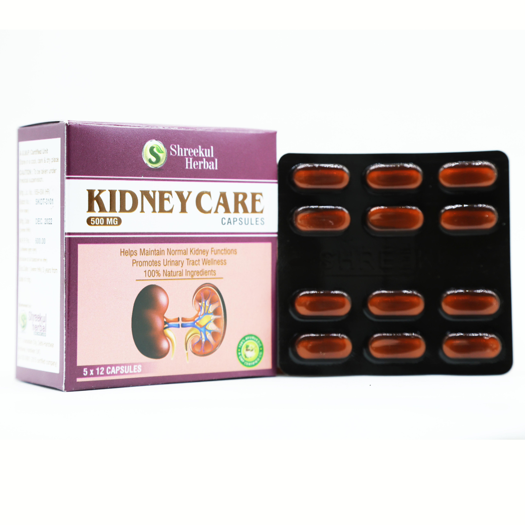 Shreekul Herbal Kidney Care Capsules are a natural Ayurvedic solution formulated to support kidney health and overall urinary wellness. Blended with 11 powerful herbal ingredients like Pashanbhed, Punarnava, Gokshur, and Shuddha Shilajit, these capsules are specially designed to maintain normal kidney functions and promote natural detoxification.