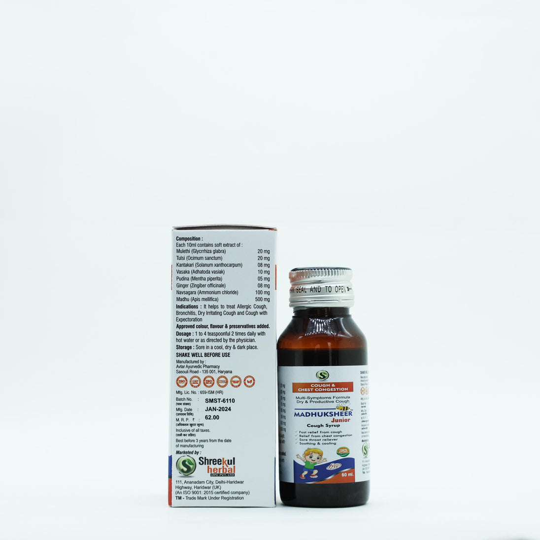 Madhuksheer Junior is a gentle and effective herbal cough syrup specially formulated for children.