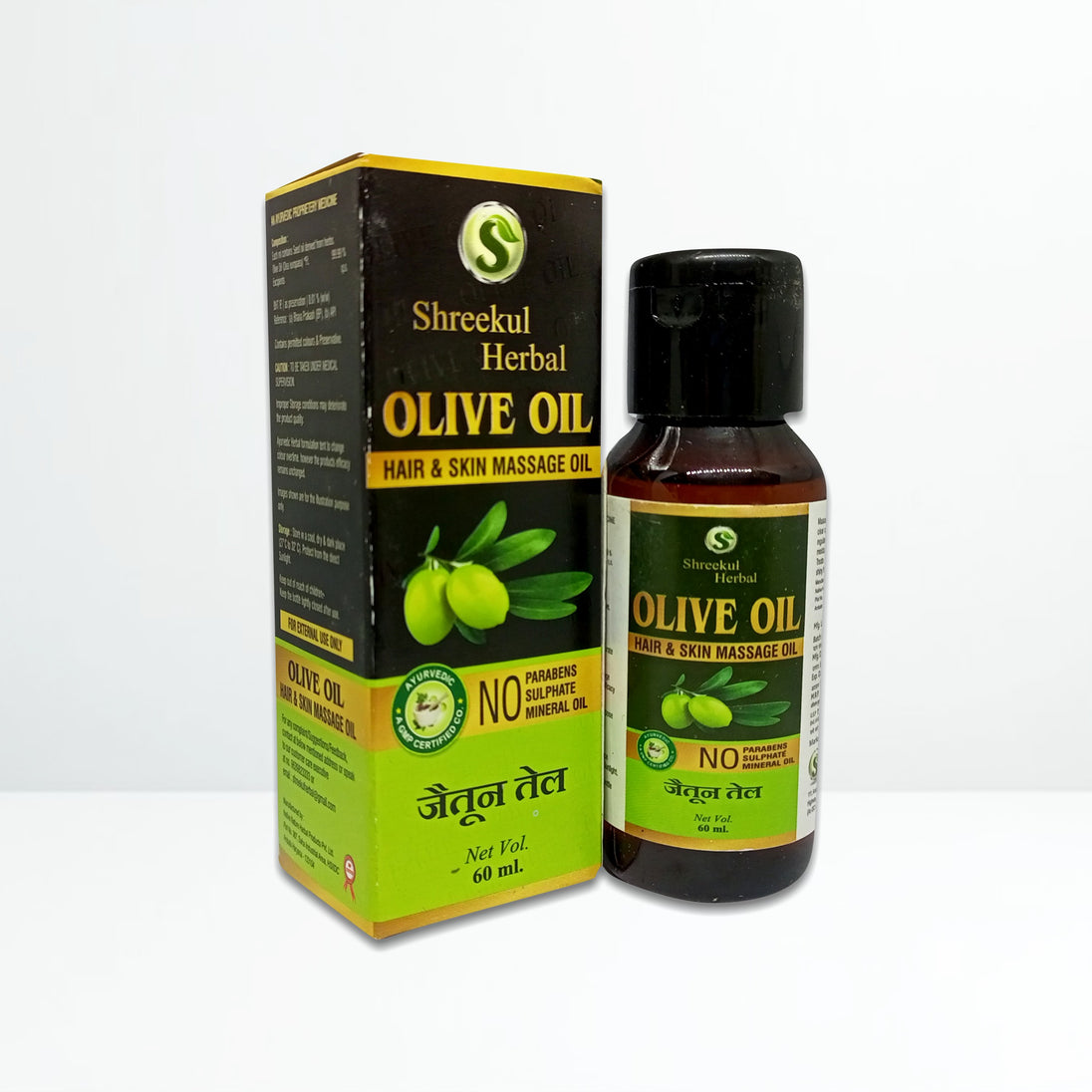 Shreekul Herbal Olive (Jaitun) Oil is a 100% pure olive extract, ideal for both hair and skin care. It helps in improving skin texture, reducing pigmentation and redness, while deeply nourishing the skin.