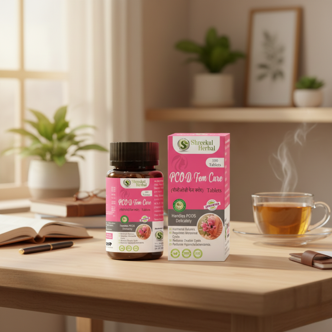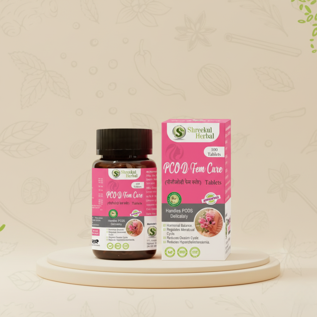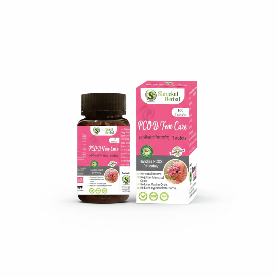PCOD Fem Cure Tablets are an effective Ayurvedic solution specially formulated for women struggling with PCOD / PCOS problems. These tablets help naturally balance hormonal imbalance, regulate irregular periods, and support the reduction of ovarian cysts.