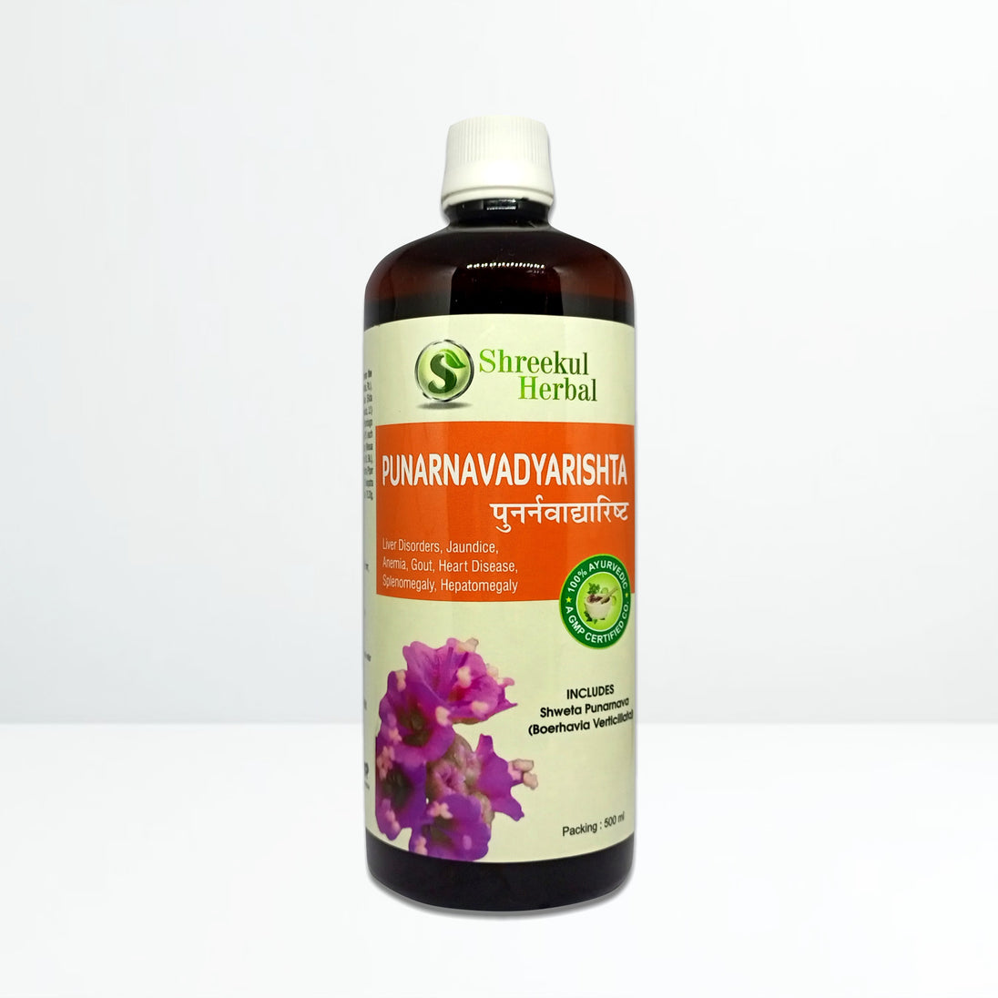 Punarnavadyarishta (500ml) is a classical Ayurvedic formulation well-regarded for its effectiveness in liver health, jaundice, and anaemia. It combines the power of Punarnava (Shveta & Rakta) along with other potent herbs like Bala, Atibala, Guduchi, Citraka, and Nagakesara to strengthen liver functions, cleanse the body, and restore vitality.