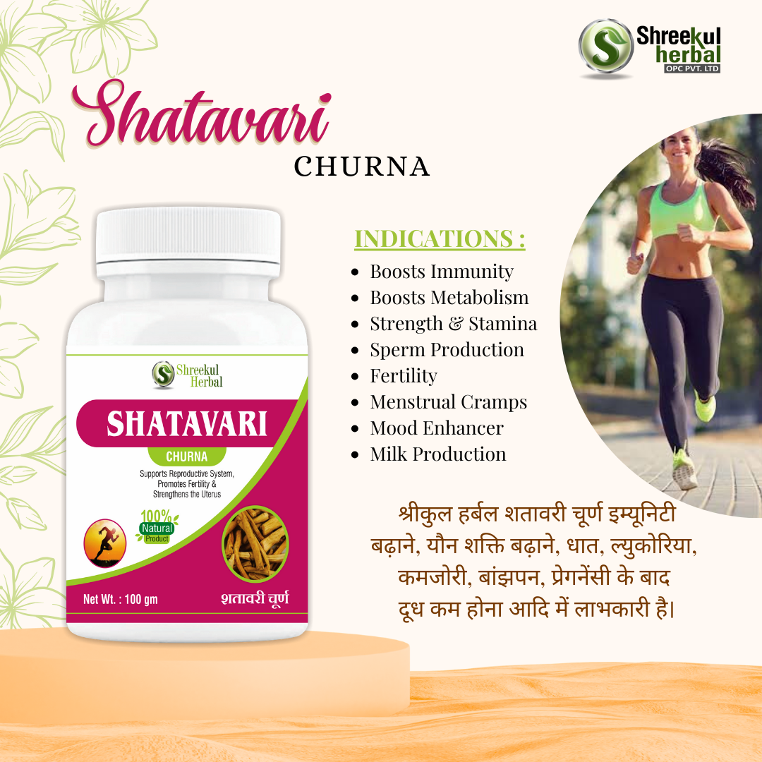 Free from additives and preservatives, Shatavari Churna is 100% natural, safe, and effective for long- term use. Bring balance to your body and mind with this trusted Ayurvedic tonic.