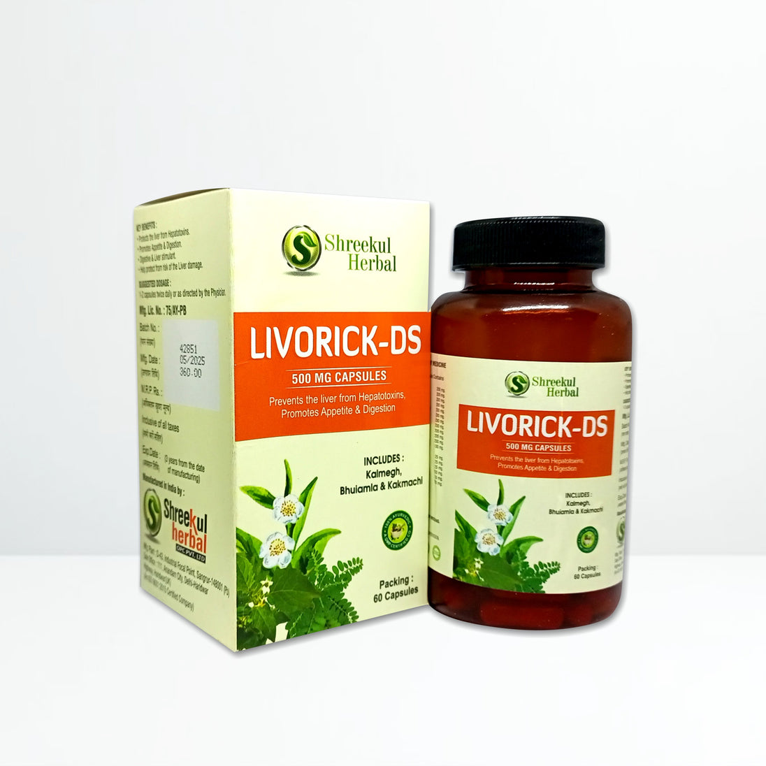 Shreeakal Herbal Livorick-DS Capsules are a unique Ayurvedic formulation designed to support healthy liver function and promote natural detoxification. Enriched with 12 potent herbal extracts including Guduchi, Kalmegh, Bhringraj, Bhuiamla, Tulsi, Punarnava, and Kutki, this blend is carefully crafted to protect the liver, improve digestion, and enhance overall wellness.
