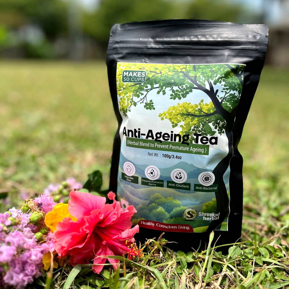 Shreekul Herbal Anti-Ageing Tea is a herbal blend formulated to support skin and body wellness. The tea is crafted for regular consumption as part of a healthy lifestyle.