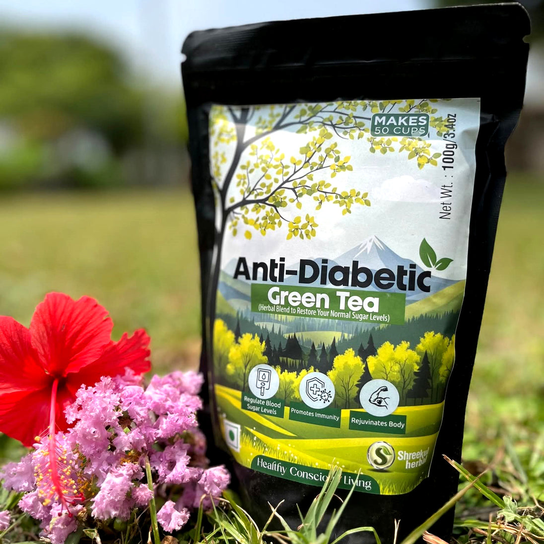 Shreekul Herbal Anti-Diabetic Green Tea is a herbal blend designed to support everyday wellness. It is prepared as a green tea suitable for regular consumption.