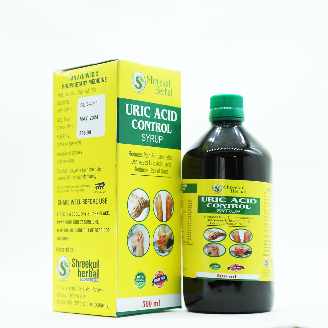 Shreekul Herbal Uric Acid Control Syrup is an Ayurvedic proprietary herbal syrup designed for uric acid management. The formulation is positioned for regular wellness support related to joint and inflammation discomfort.