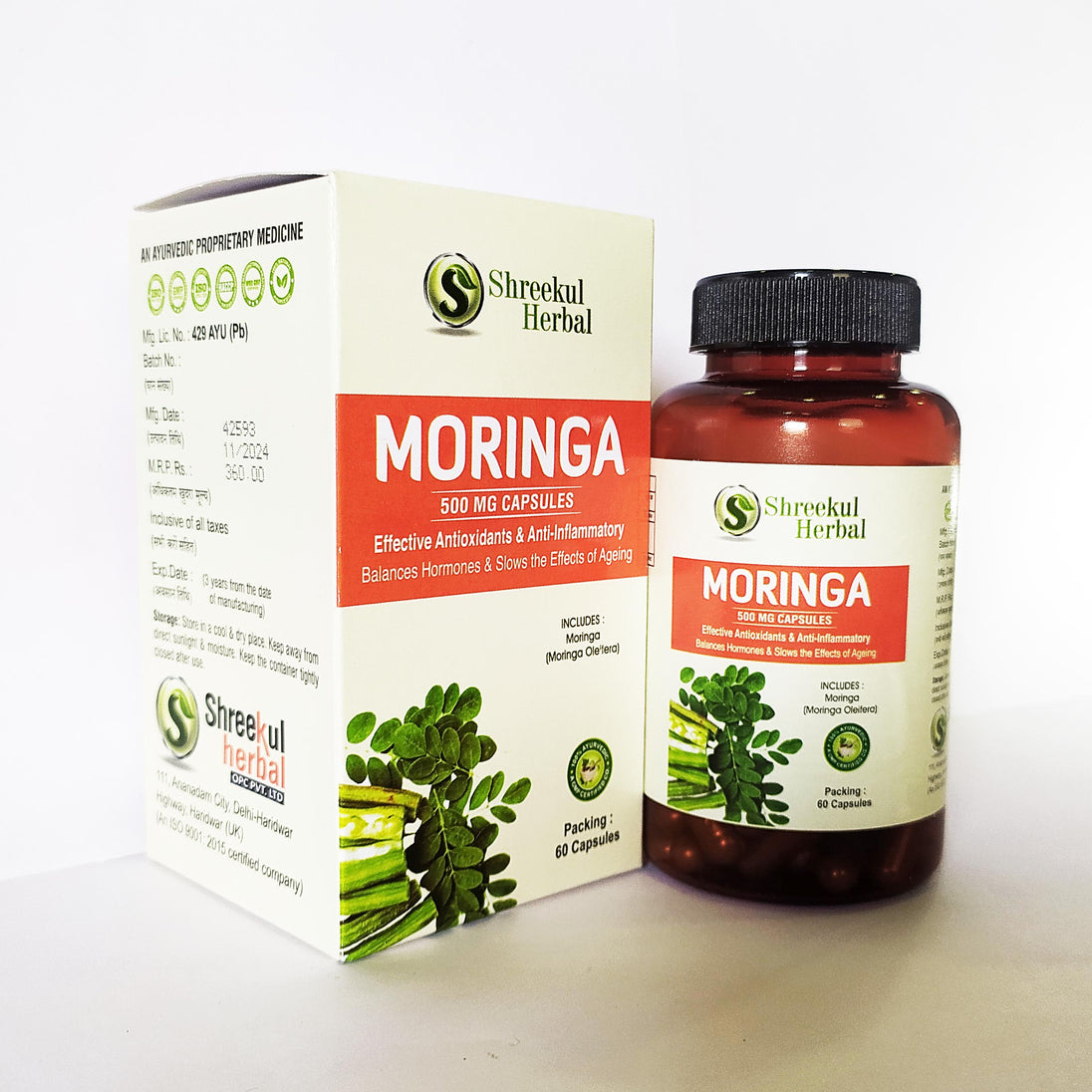 ShreeKul Herbal Moringa Capsules also enhance stamina, endurance, and vitality, making them suitable for individuals seeking an energy boost in their daily routine. Completely herbal and safe, this supplement is a natural powerhouse for complete wellness.