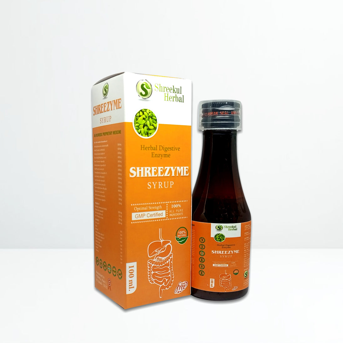 Shreezyme Syrup is an Ayurvedic herbal digestive formula crafted to support healthy digestion and relieve common gastrointestinal issues. Powered by a potent blend of 11 traditional herbs such as Saunf, Tulsi, Pipal, Sounth, Jeera, and Hing, it works synergistically to reduce bloating, gas, acidity, and indigestion.